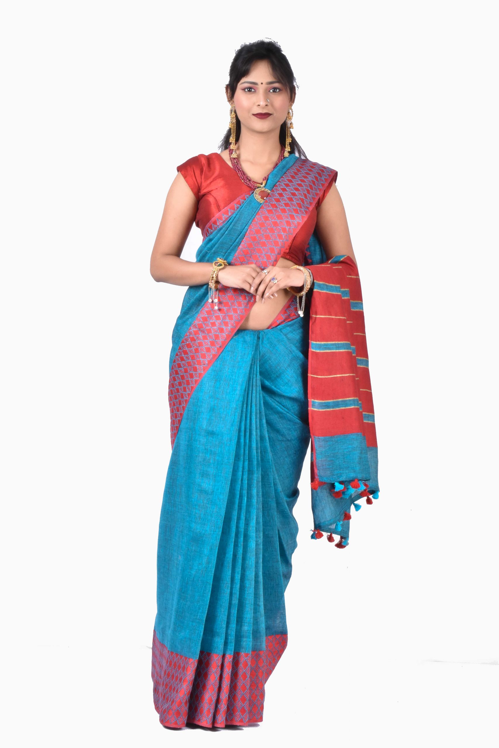 Tags: Pure Linen Saree, saree, Sky Blue Color Pure Linen Saree
